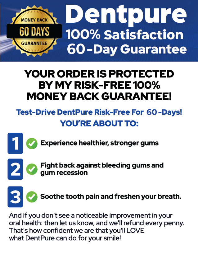 Currently, DentPure is backed by a 60-day money-back guarantee, giving you a completely risk-free opportunity to try it for yourself.
