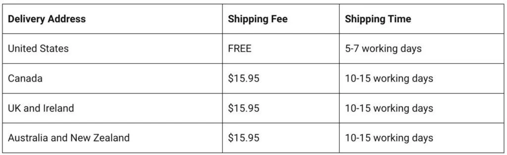 Orders are processed within 2-3 days. For customers in the US, delivery typically takes 5-7 days. International orders may take 10-12 days, depending on customs procedures.